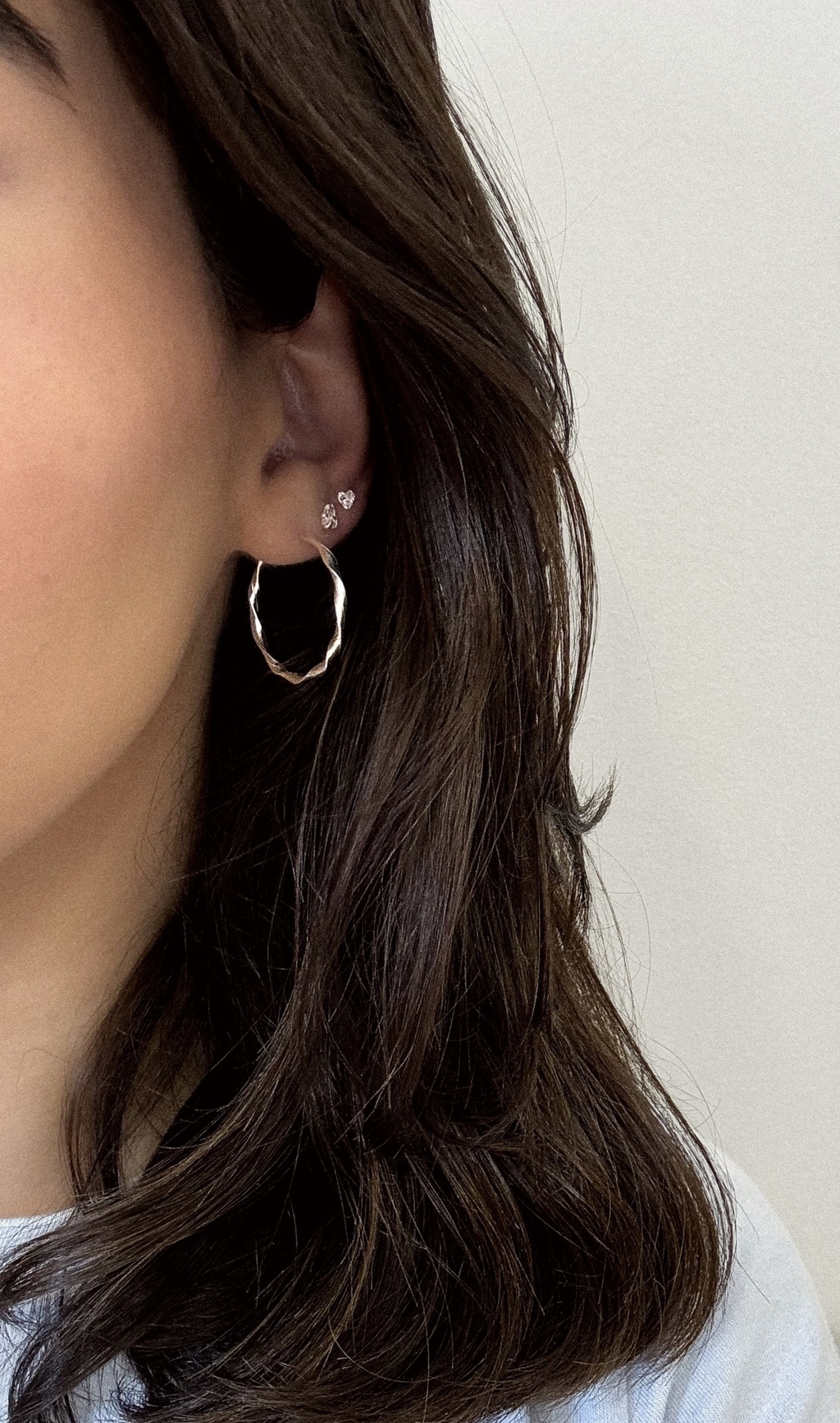 Trio de brincos Pontos de Luz Trevinhos - Semijoia ródio branco