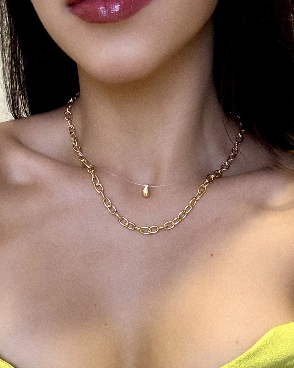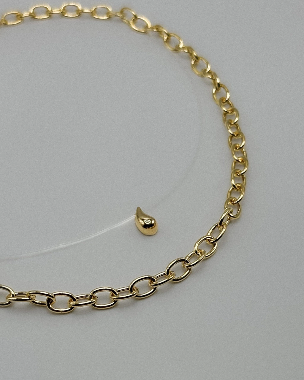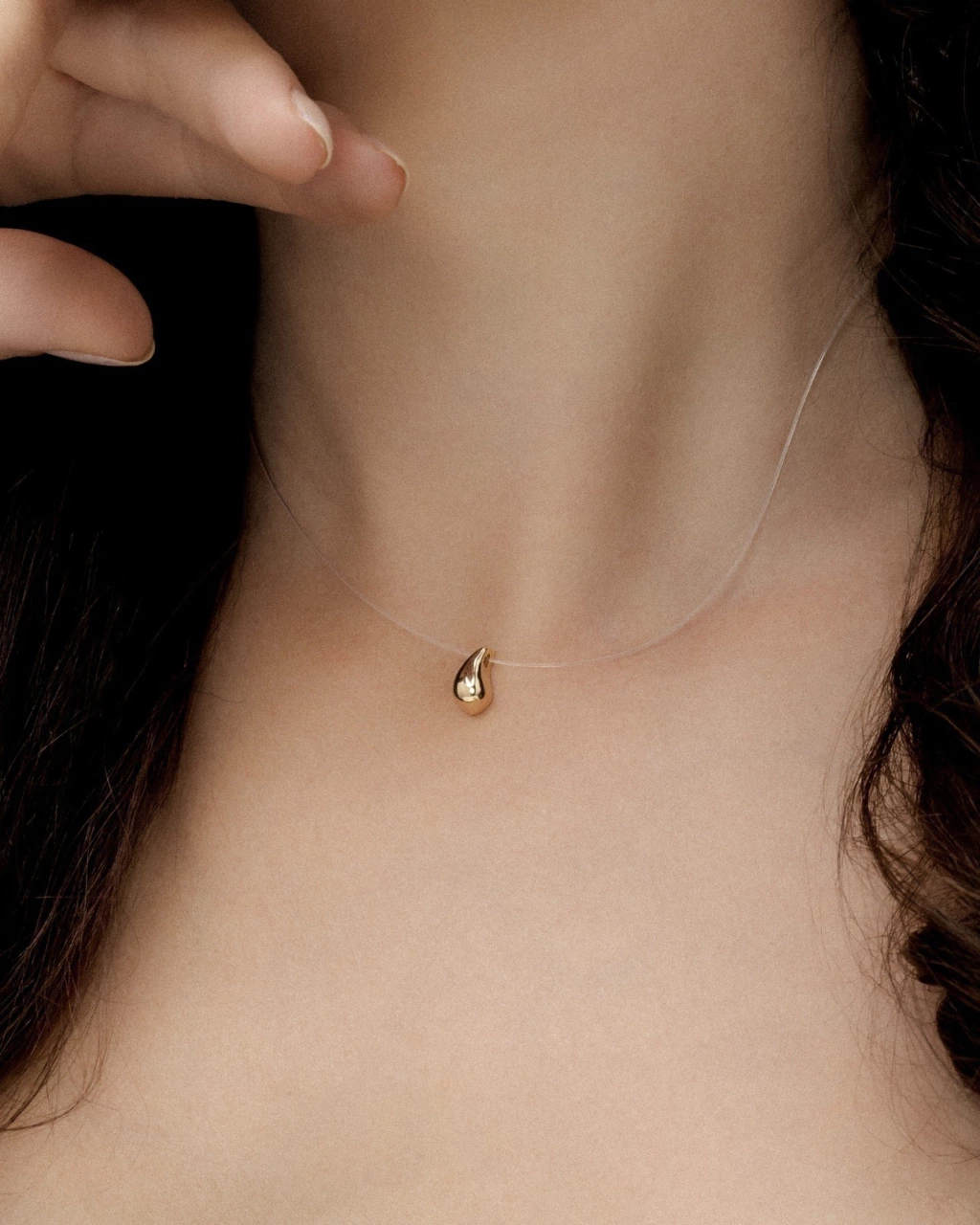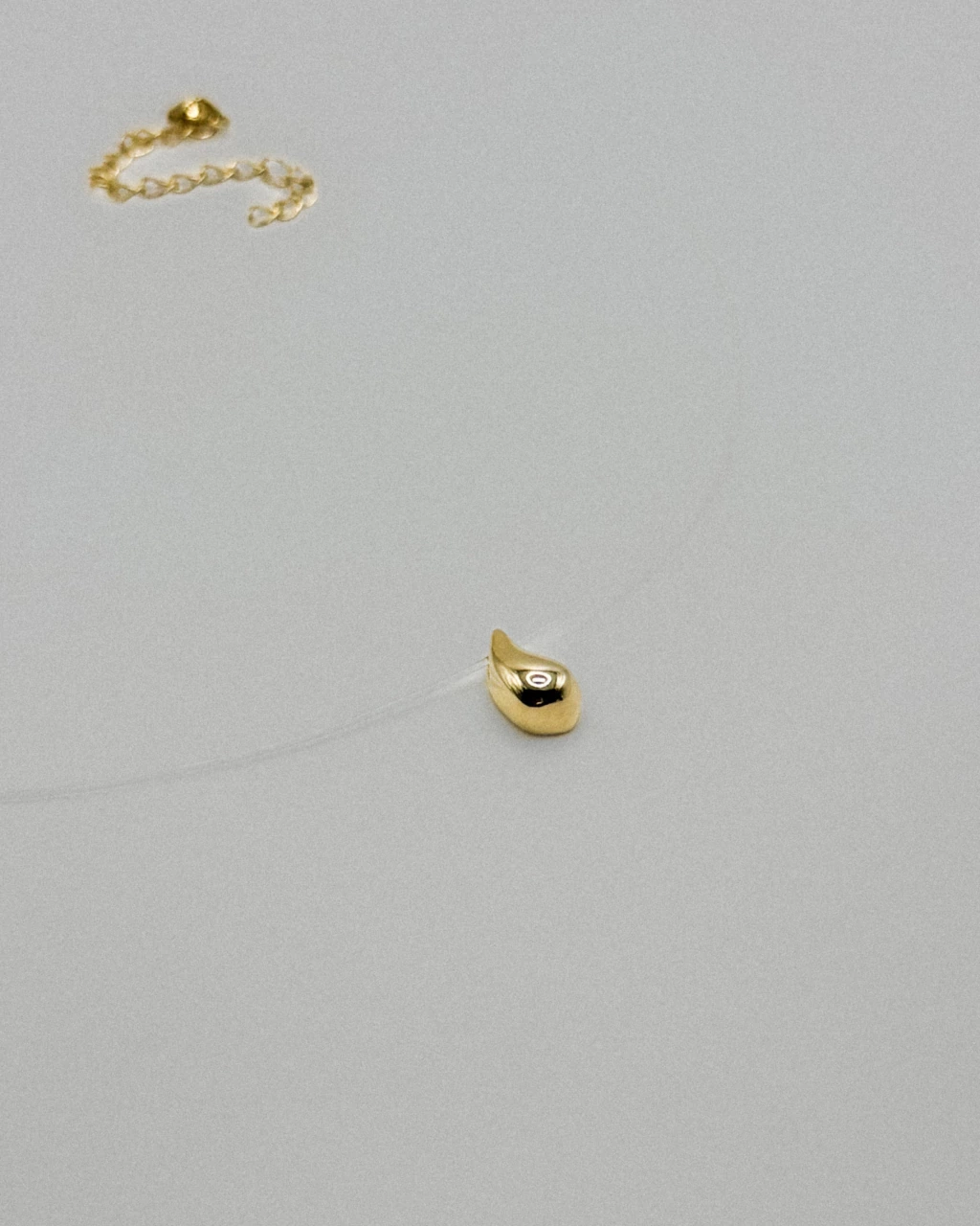 - Pingente pérola, fio de nylon e extensor banhado a ouro 18k