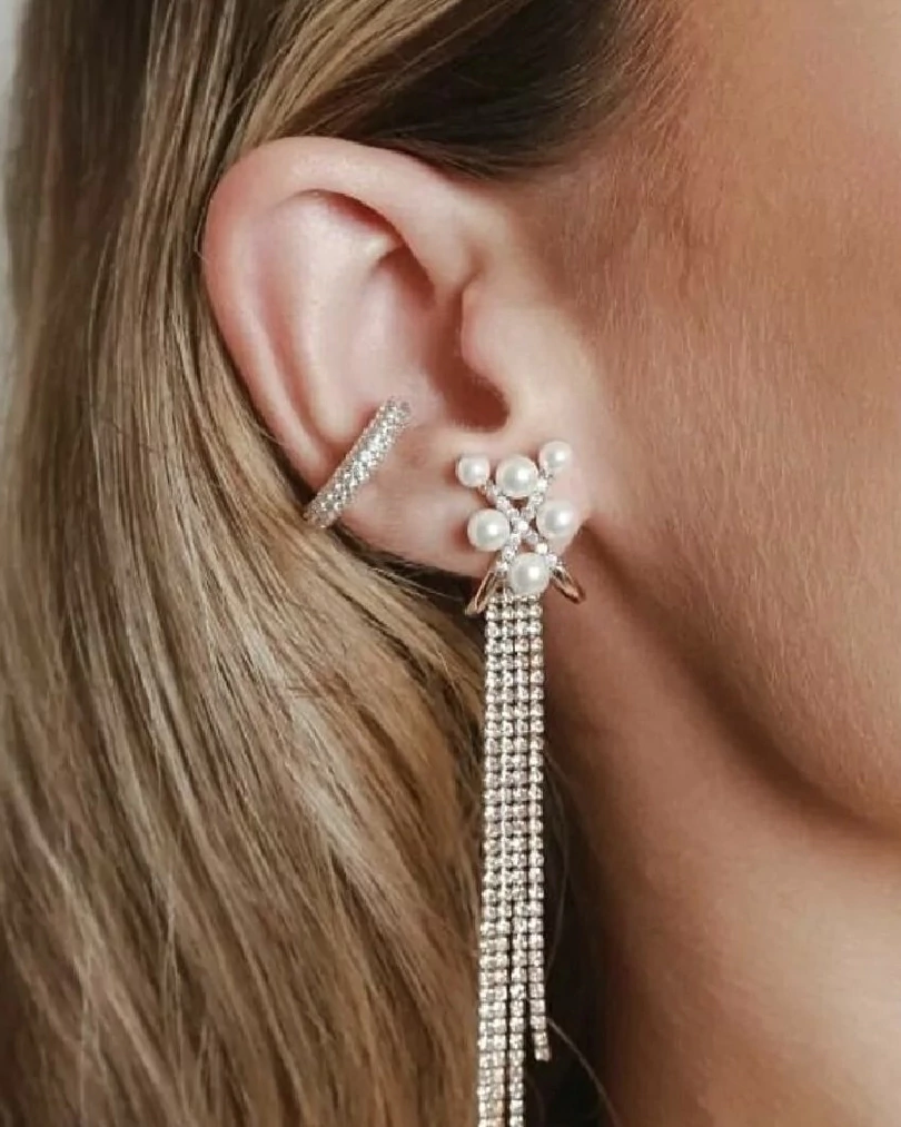 Trio de brincos Pontos de Luz Geométricos cravejados e delicados - Semijoia ródio branco